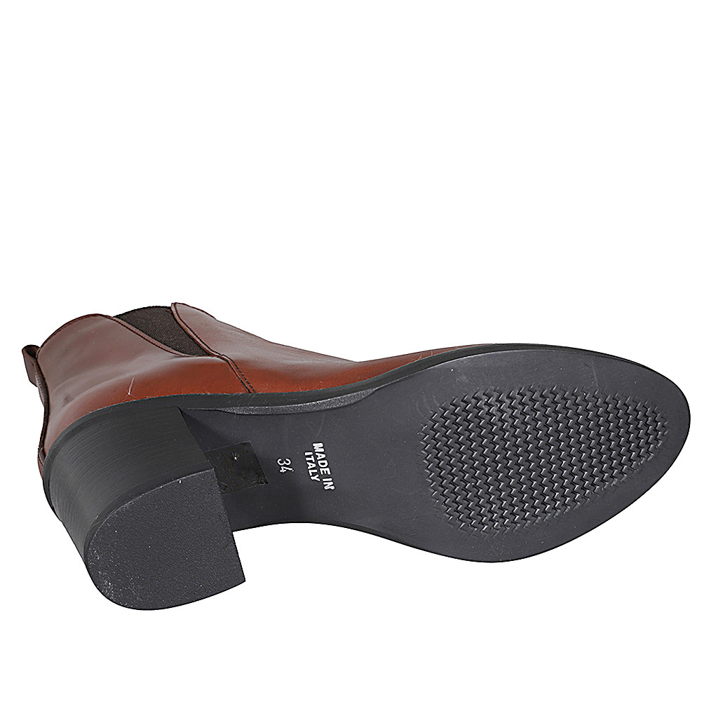 Bottines pour femmes avec fermeture éclair et elastique en cuir cognac talon 6