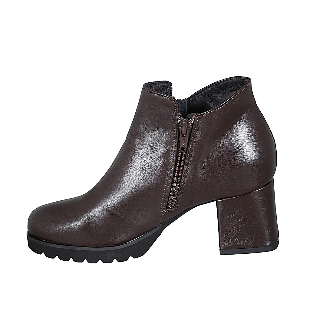 Bottes pour femmes en cuir noir et cognac avec fermeture éclair talon 4