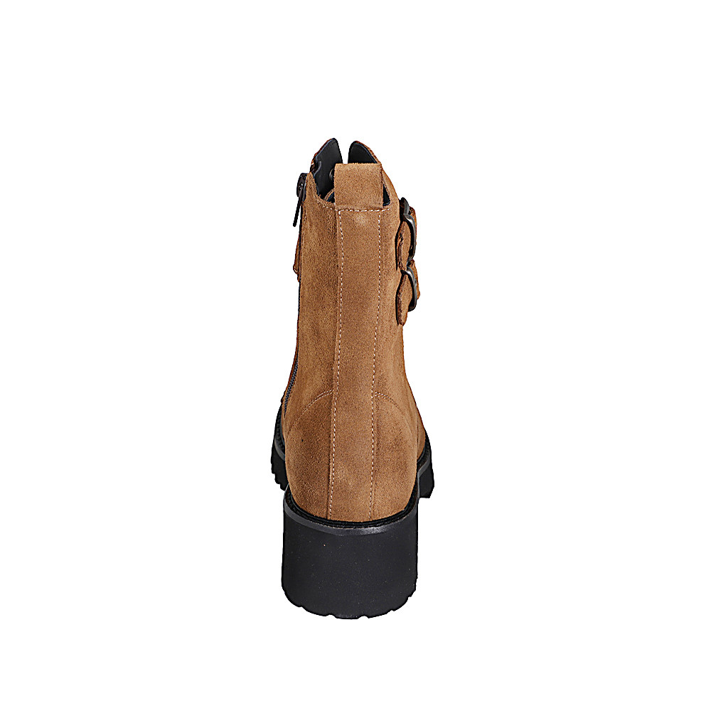 Lacets bottines pour femmes avec fermeture èclair intérieure et doubles boucles en daim marron et talon 5 - Pointures disponibles:  32, 35, 42, 43