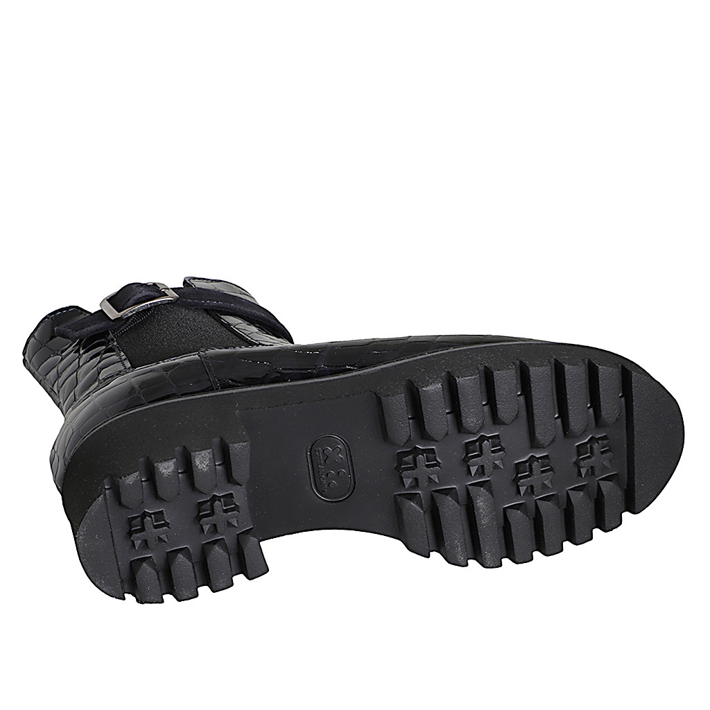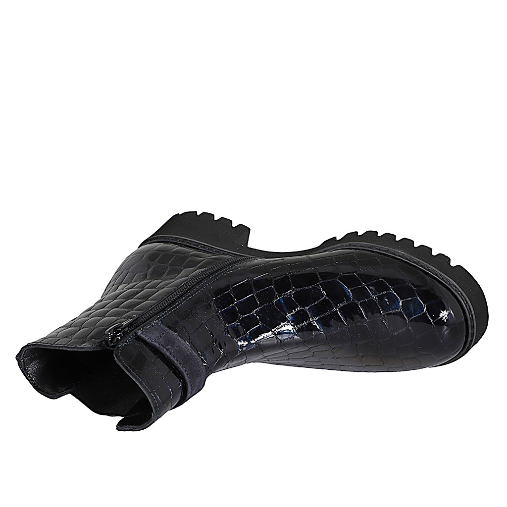 Bottines pour femmes avec semelle amovible, boucle, elastique et fermeture éclair en cuir verni lamé bleu talon 4 - Pointures disponibles:  31, 32, 34, 35, 42, 45, 46