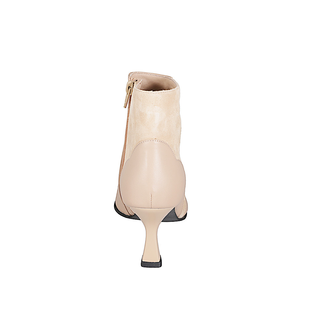 Bottines pour femmes en cuir nude et daim beis avec fermeture éclair talon 7