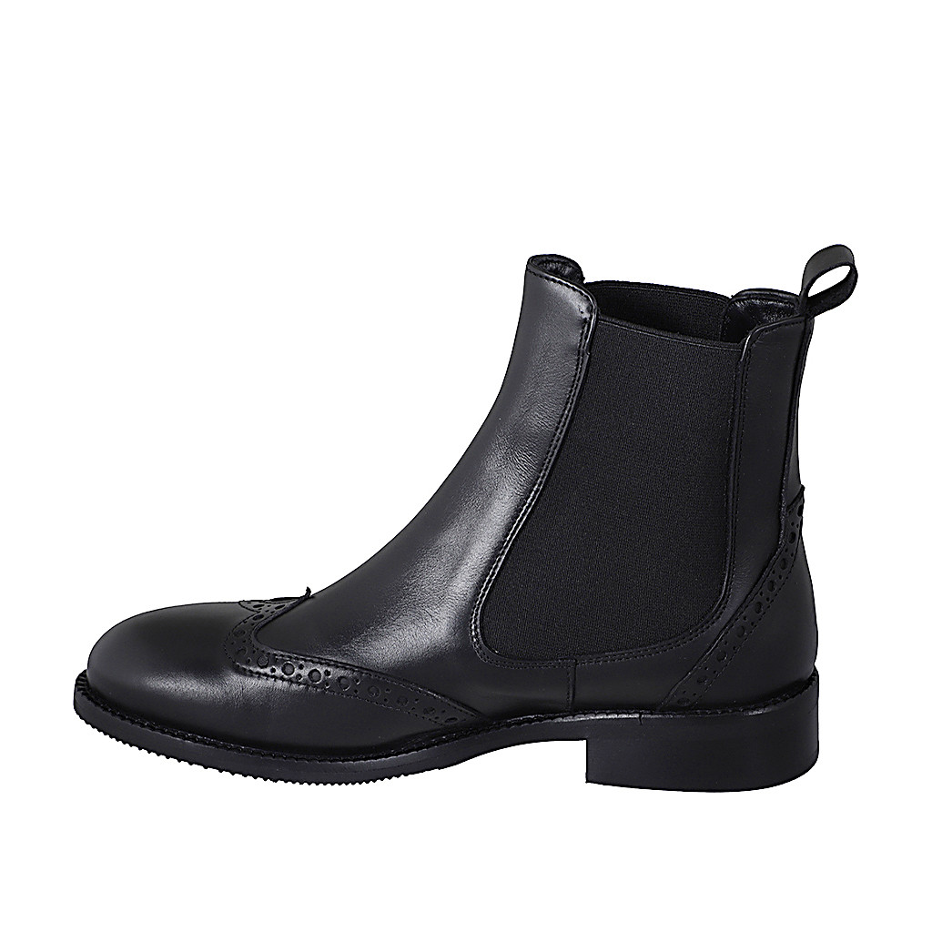Chelsea bottines pour femmes avec elastiques et bout golf en cuir noir talon 3 - Pointures disponibles:  32, 47