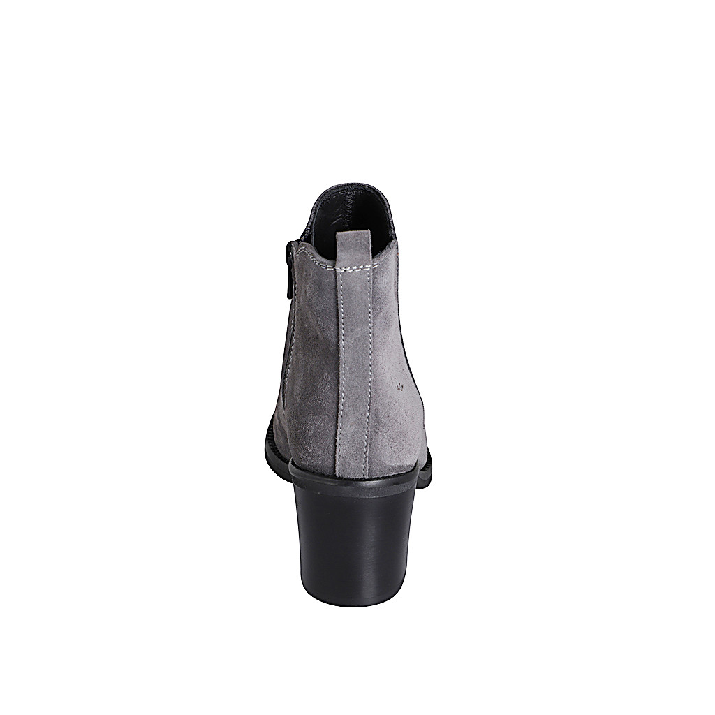 Bottines pour femmes avec fermeture éclair et elastique en daim gris talon 6 - Pointures disponibles:  32, 35, 46
