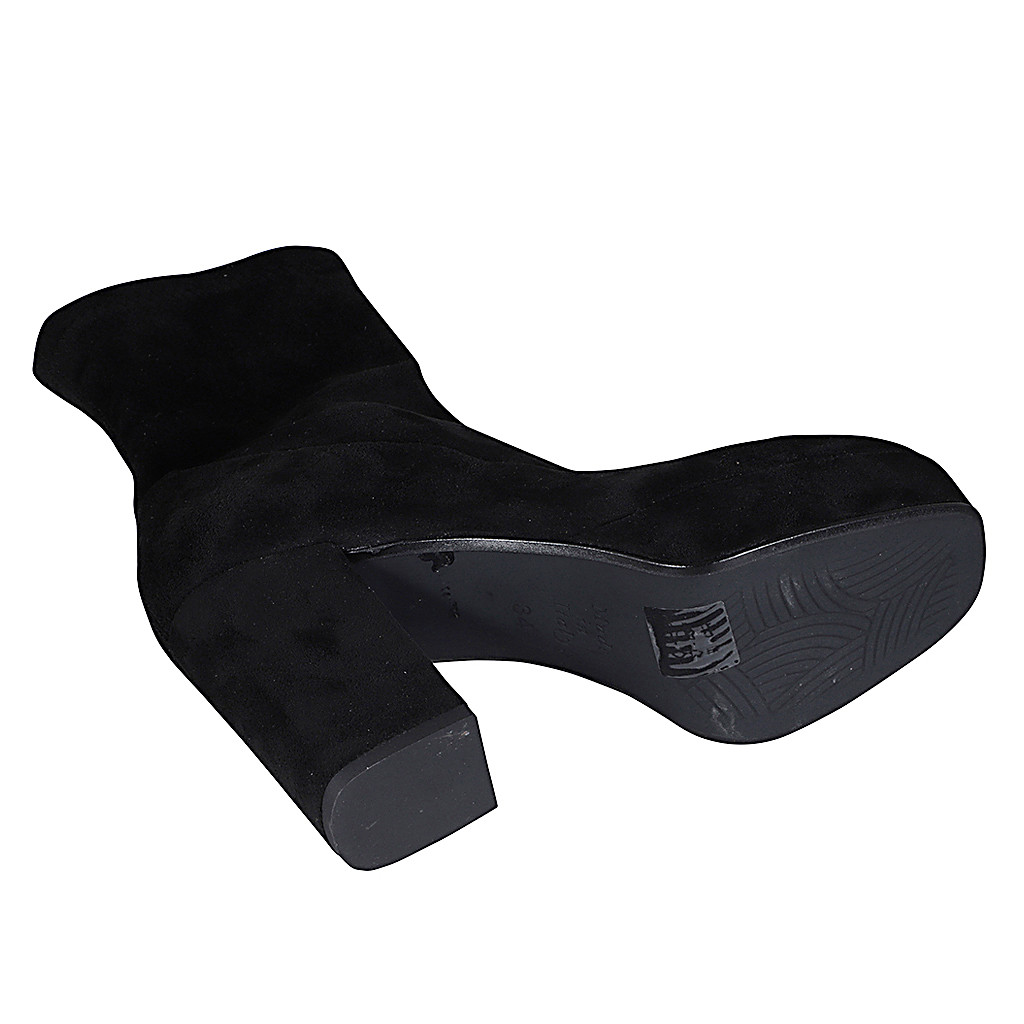 Bottines pour femmes avec fermeture éclair et plateforme en daim et matériau élastique noir talon 9 - Pointures disponibles:  33, 35