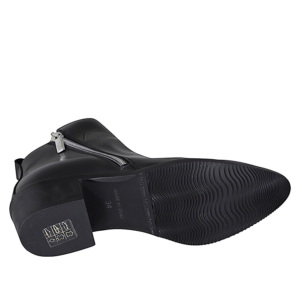 Bottines à bout pointu pour femmes avec fermetures éclair en cuir noir talon 4 - Pointures disponibles:  35