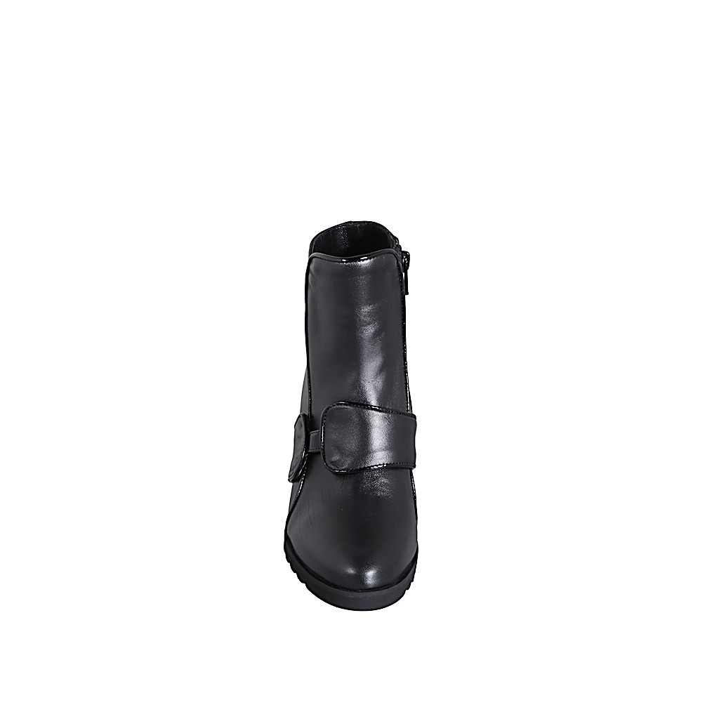 Sneaker avec fermetures èclair et semelle amovible pour femmes en daim noir et cuir verni imprimé talon compensé 3