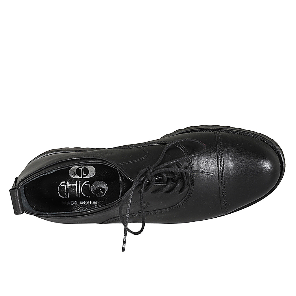 Chaussure pour femmes à lacets avec fermeture éclair en cuir beis y imprimé lamé platine talon compensé 4