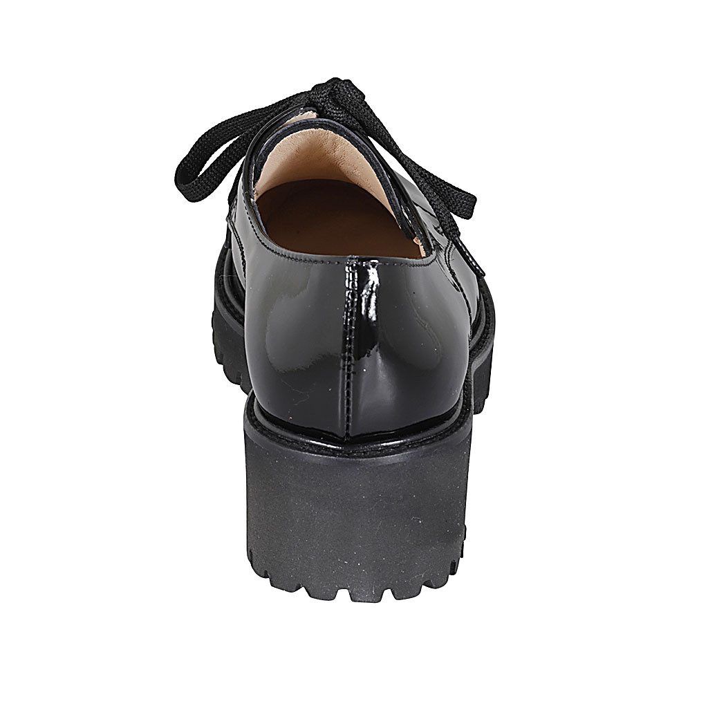 Chaussure derby pour femmes à lacets en cuir verni noir talon 5 - Pointures disponibles:  45