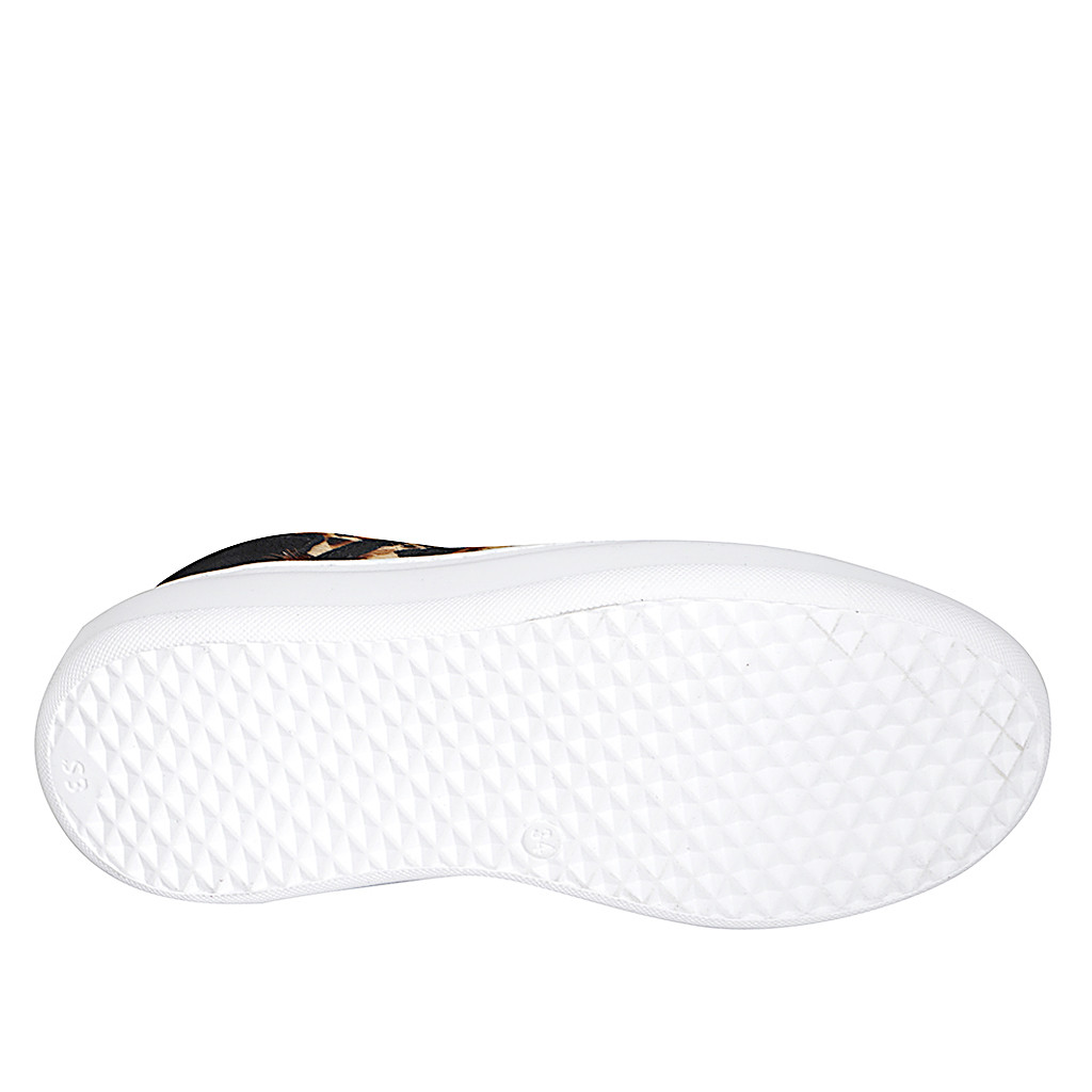 Chaussure pour femmes à lacets avec fermetures éclair en cuir blanc y lamé argent talon compensé 4