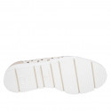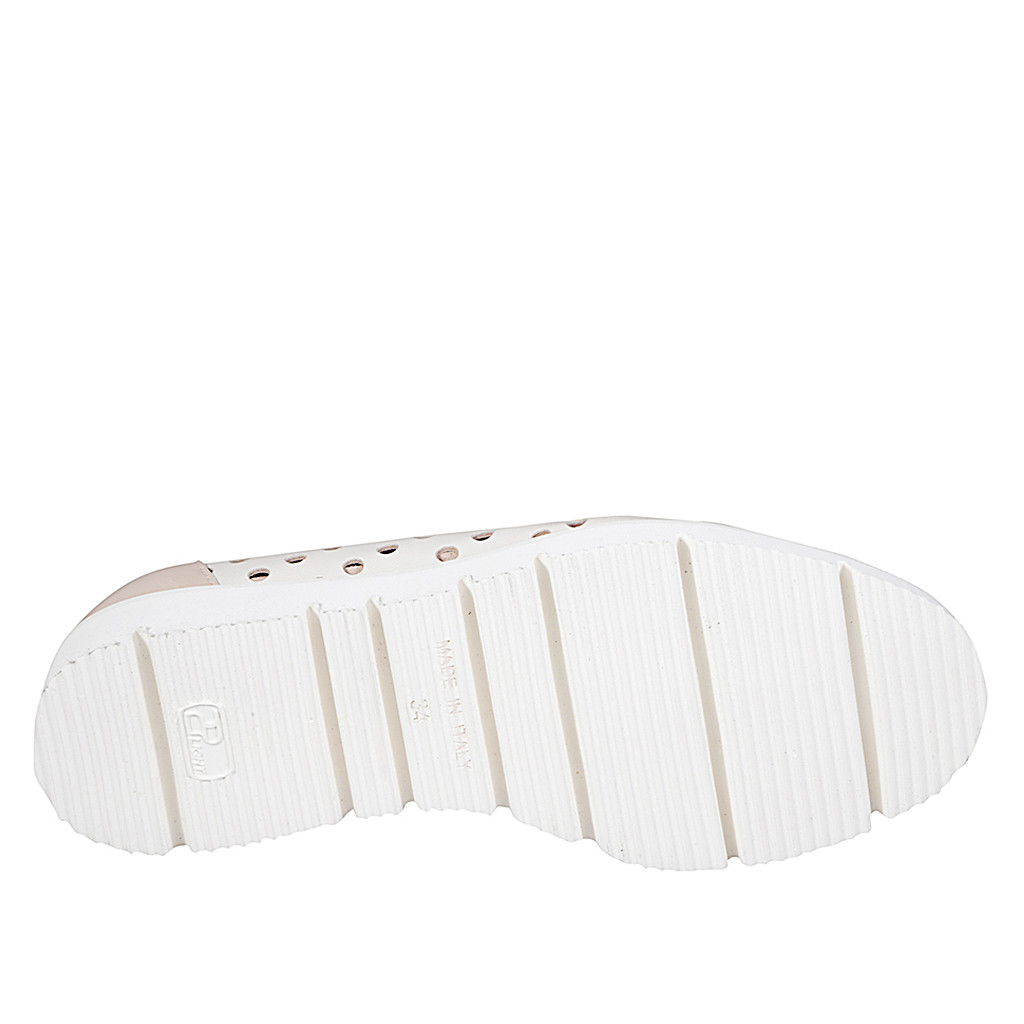 Chaussure pour femmes avec semelle amovible en cuir perforé ivoire et cuir verni nude et talon compensé 3