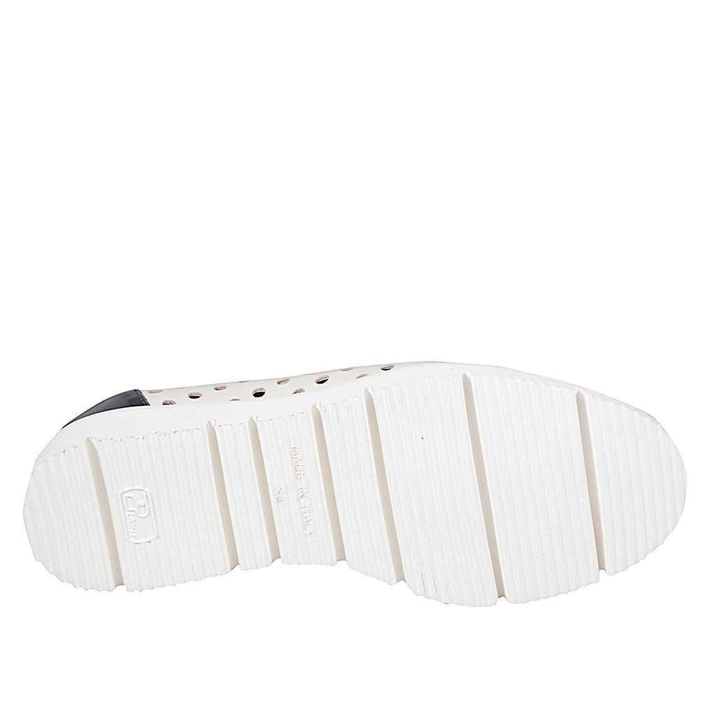 Sneaker pour femmes avec lacets et semelle amovible en cuir et cuir perforé blanc talon compensé 4