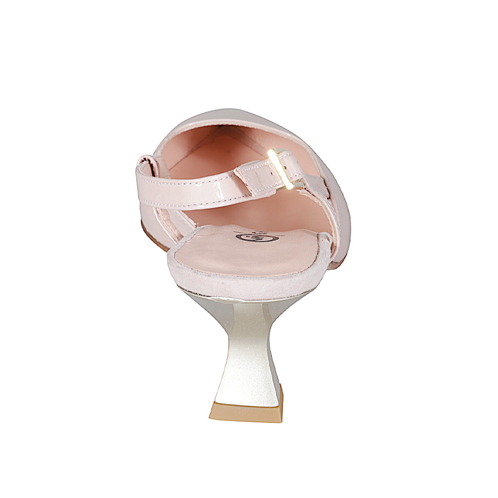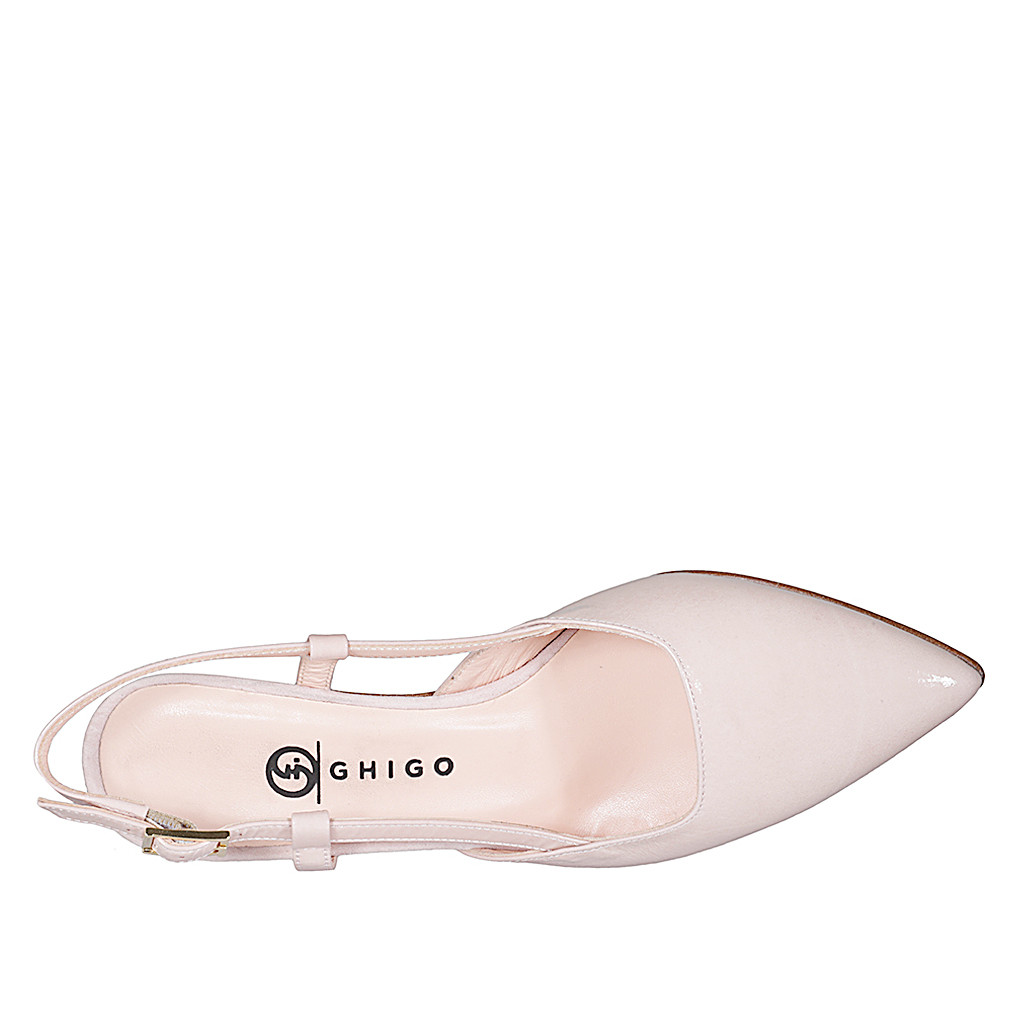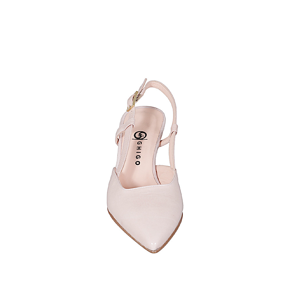 Slingback à bout pointu pour femmes en cuir verni nude avec talon bobine 5 - Pointures disponibles:  35, 45