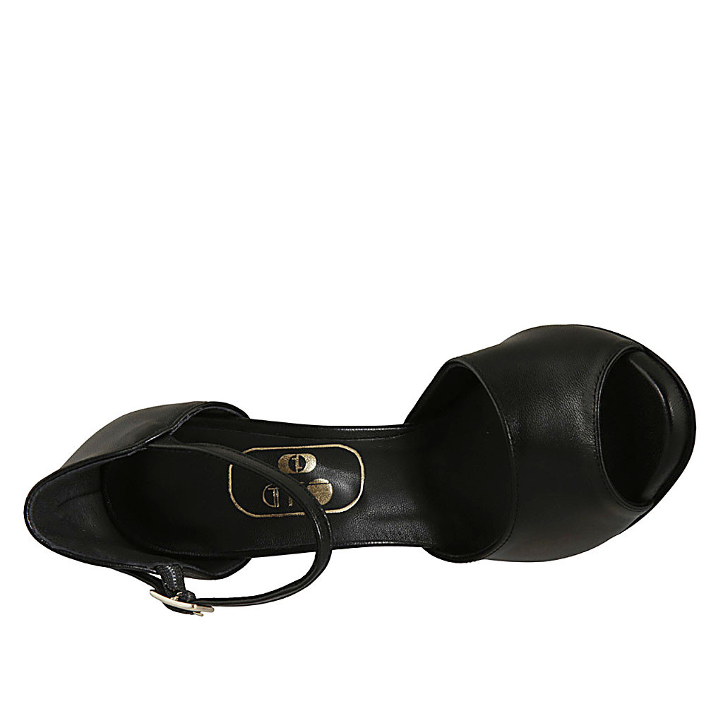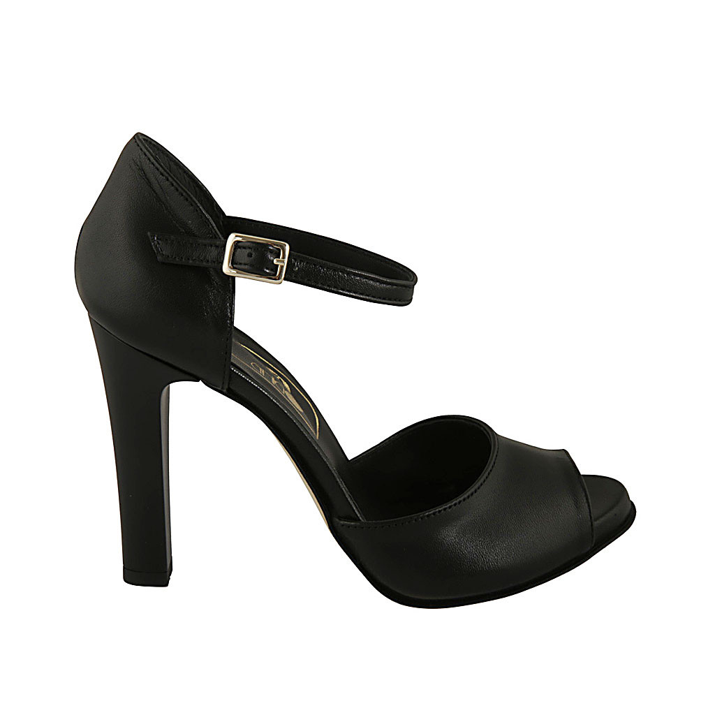 Chaussure ouverte pour femmes avec courroie en cuir noir talon 10 - Pointures disponibles:  42