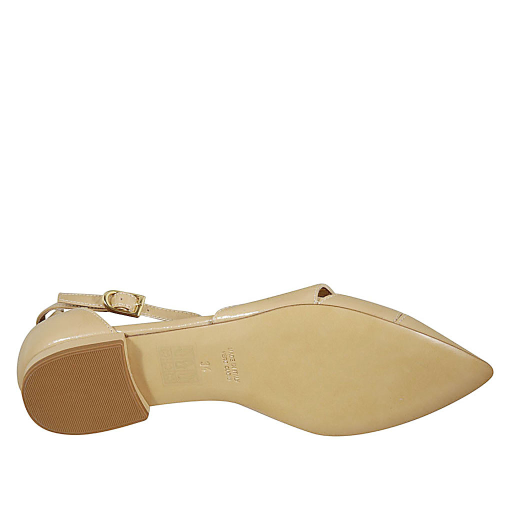 Escarpin ouvert à bout pointu pour femmes avec courroie en cuir verni beige talon 2 - Pointures disponibles:  42