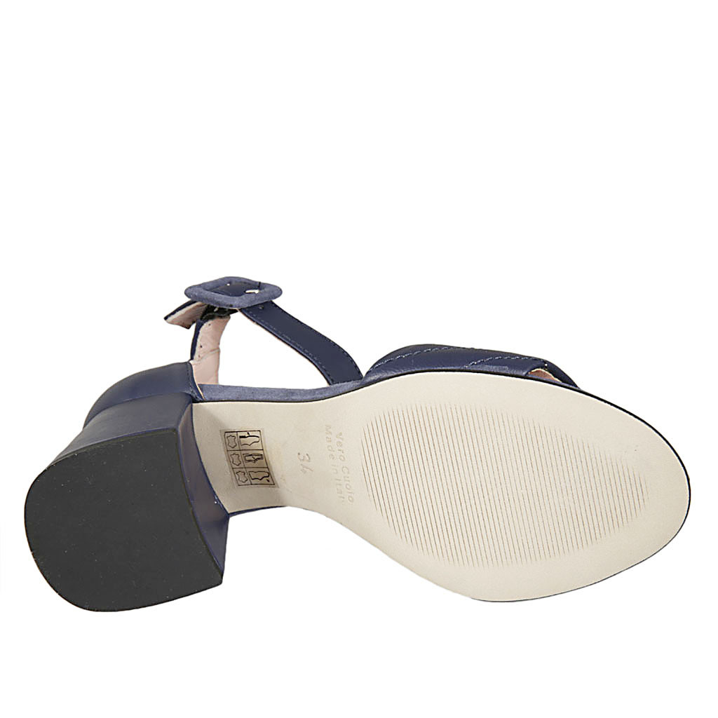 Chaussure ouverte pour femmes avec courroie à la cheville en cuir bleu talon 7 - Pointures disponibles:  42, 43
