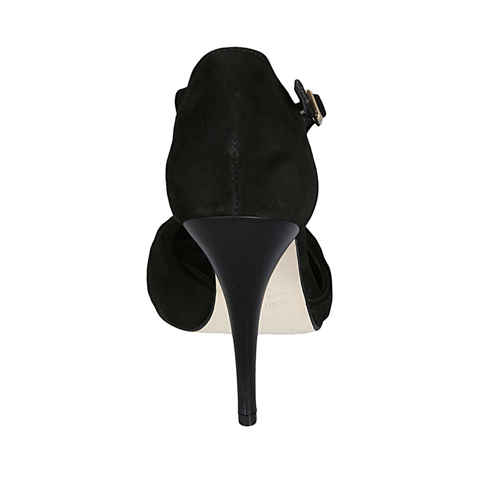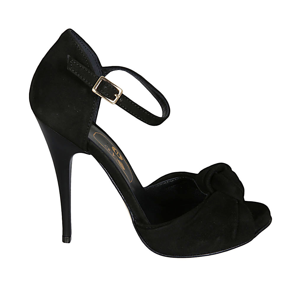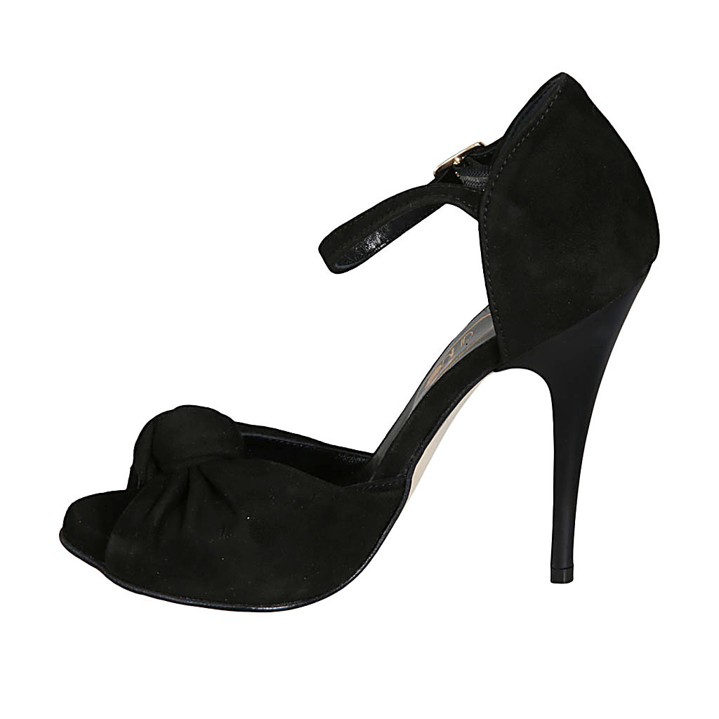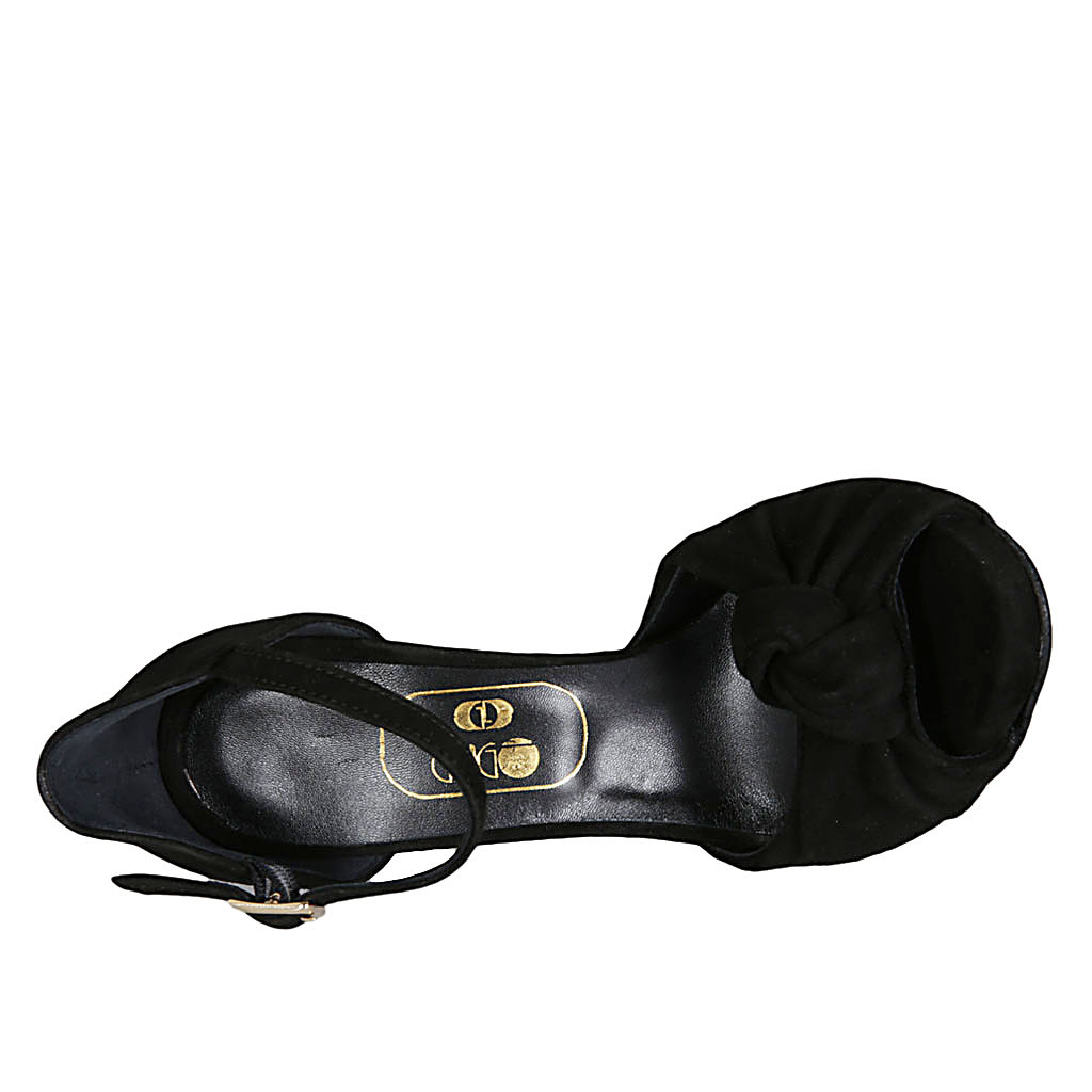 Chaussure ouverte pour femmes avec nœud et courroie en daim noir talon 11 - Pointures disponibles:  42