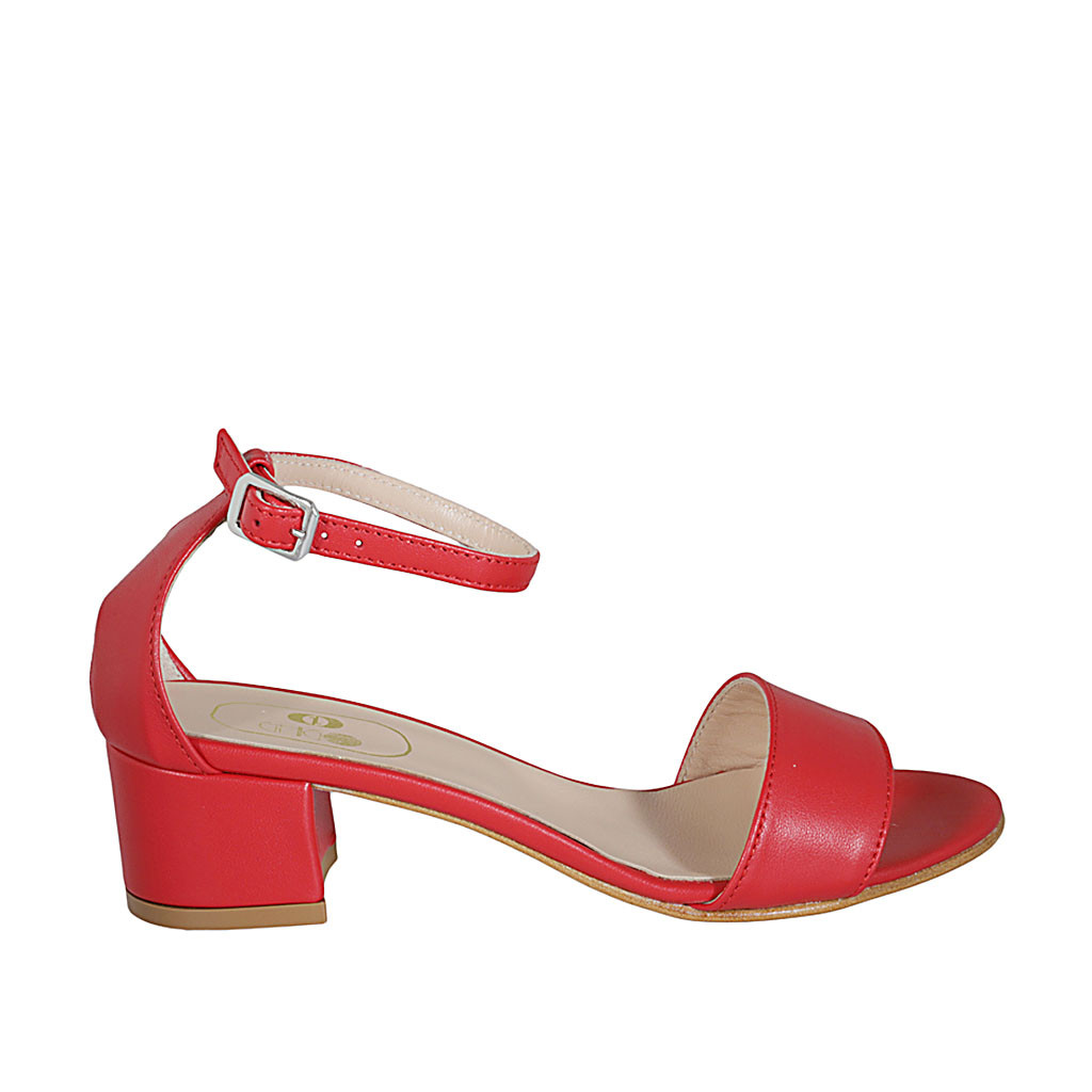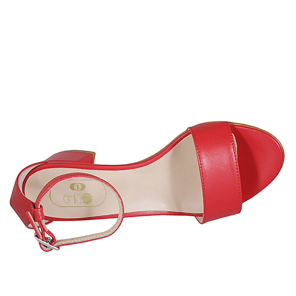 Chaussure ouverte pour femmes avec courroie à la cheville en cuir rouge talon 5 - Pointures disponibles:  42, 43, 44