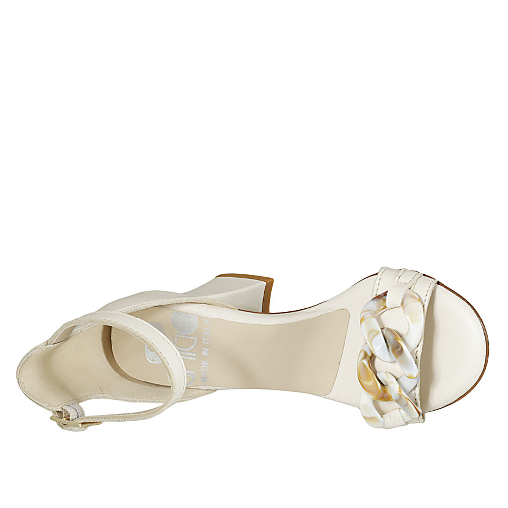 Chaussure ouverte pour femmes avec courroie et chaîne en cuir blanc créme talon 8 - Pointures disponibles:  44