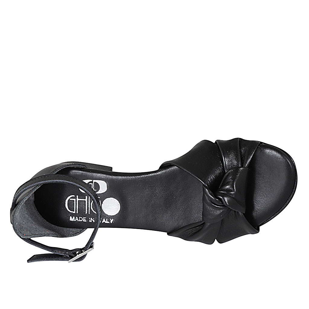 Chaussure ouverte pour femmes avec courroie et nœud en cuir noir talon 2 - Pointures disponibles:  32