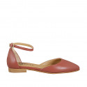 Chaussure ouverte à bout pointu avec courroie à la cheville en cuir rouge brique talon 2