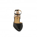 Chaussure ouverte à bout pointu avec courroie à la cheville en cuir noir talon 2