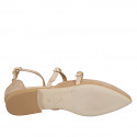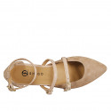 Chaussure ouverte pour femmes à bout pointu avec 3 courroies en daim taupe et cuir nue, talon 2