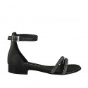 Ouvertes chaussures pour femmes avec courroie à la cheville et simple bande frontale en cuir noir...