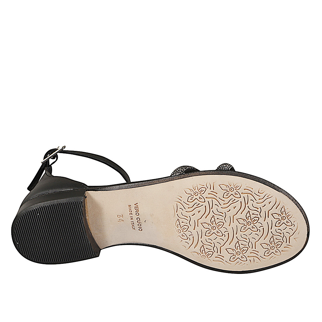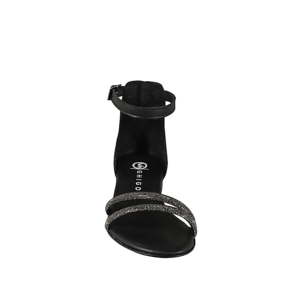 Ouvertes chaussures pour femmes avec courroie à la cheville et simple bande frontale en cuir noir talon 7
