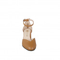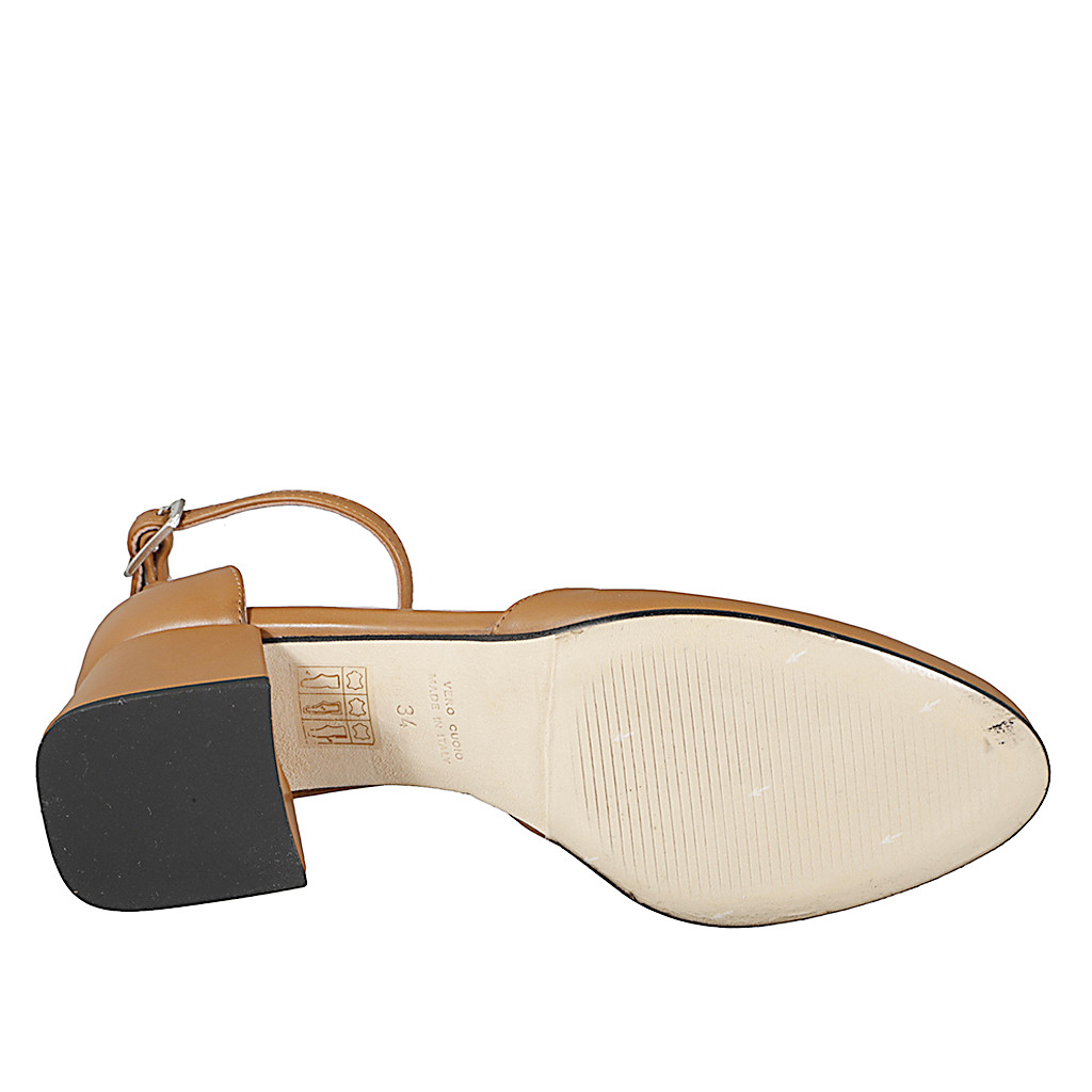 Ouvert chaussures à bout rondu pour femmes avec courroie à la cheville en cuir cognac et talon bottier 5