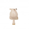 Chaussure ouverte à bout pointu et courroie en T pour femmes en cuir nude et cuir imprimé et talon 7