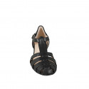Ouvert chaussures à fisherman avec T-courroie en cuir noir et talon 4