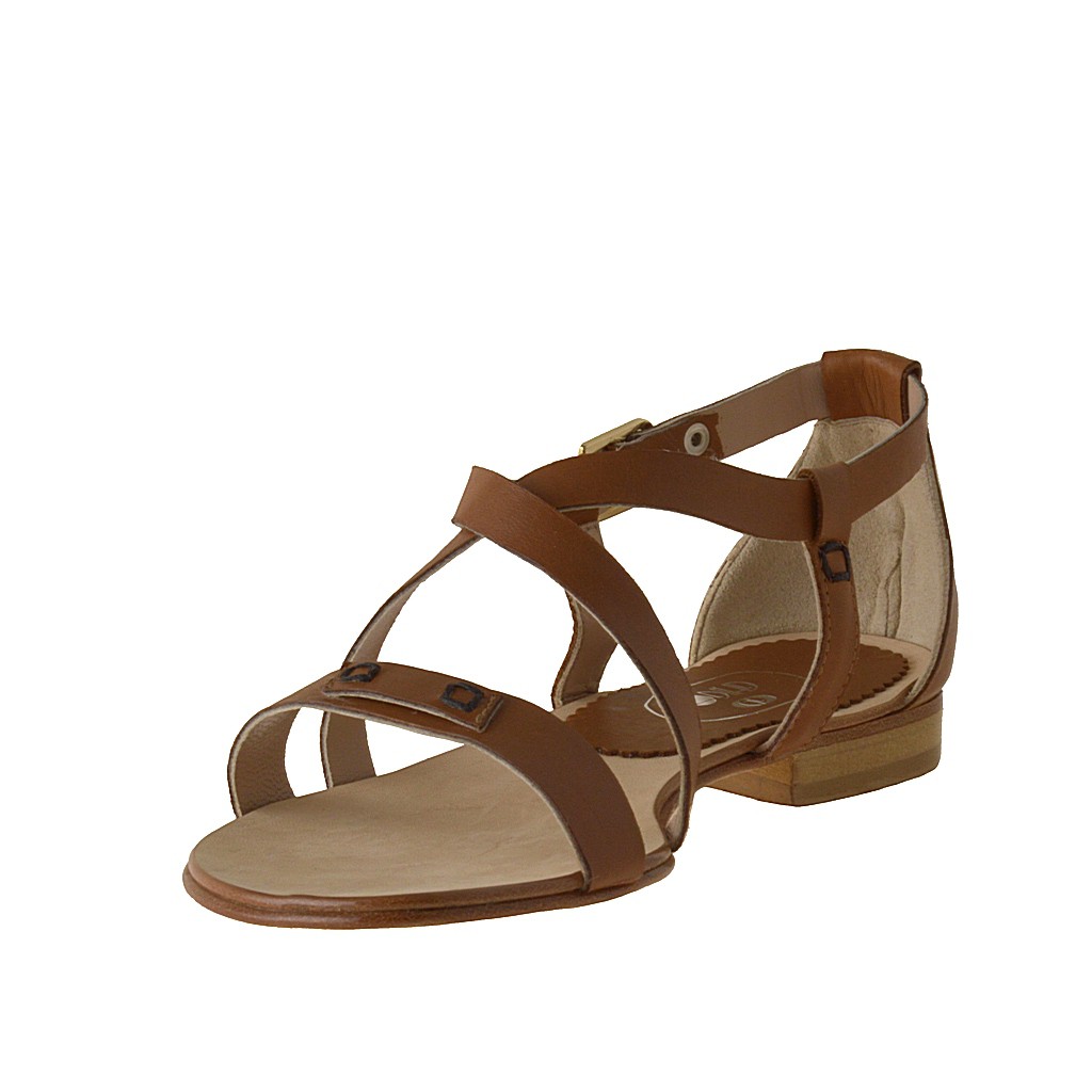 Chaussure ouvert avec courroie en cuir cognac talon 1 - Pointures disponibles:  31