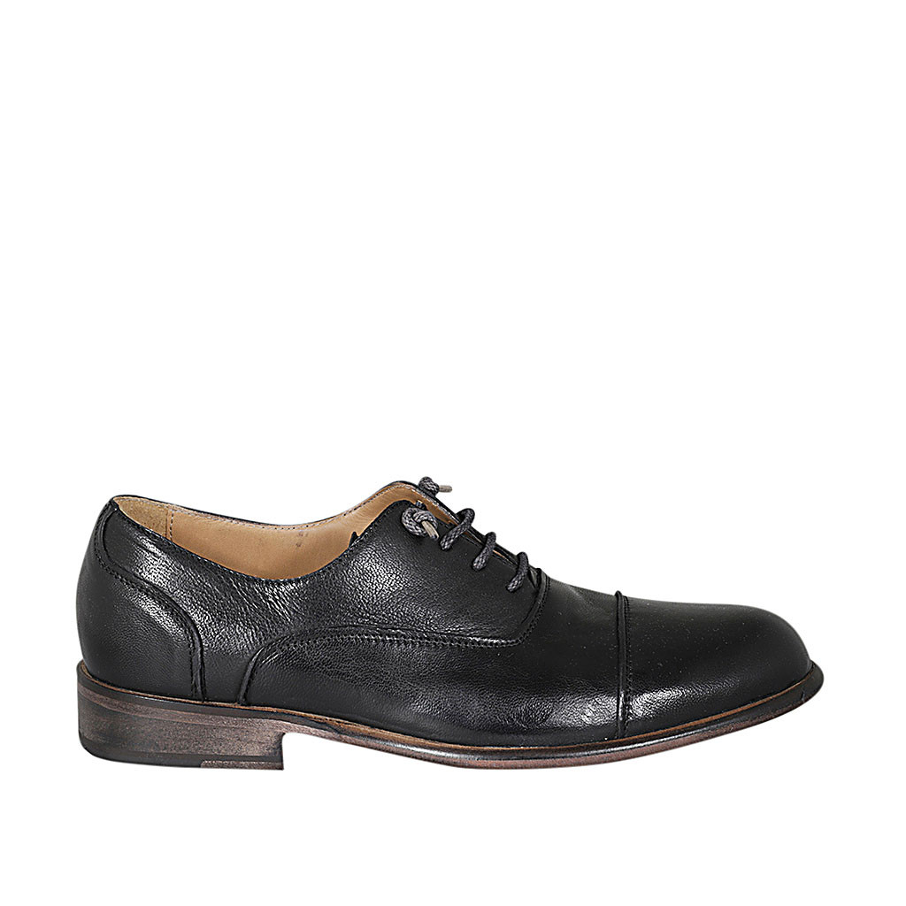 Chaussure richelieu avec lacets et bout droit pour hommes en cuir noir - Pointures disponibles:  38, 49