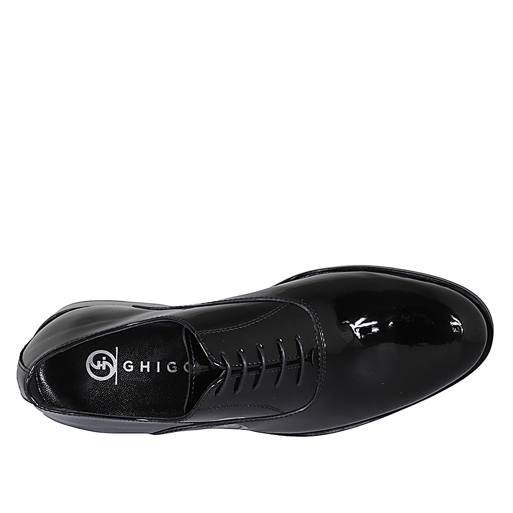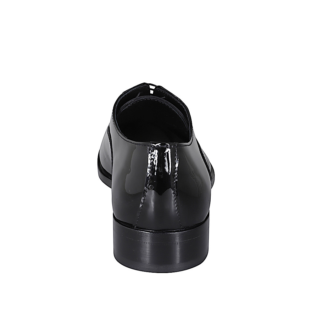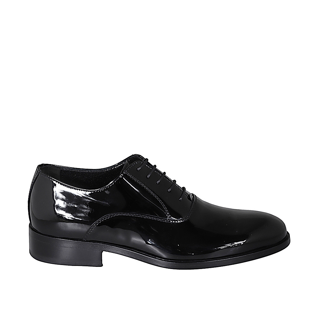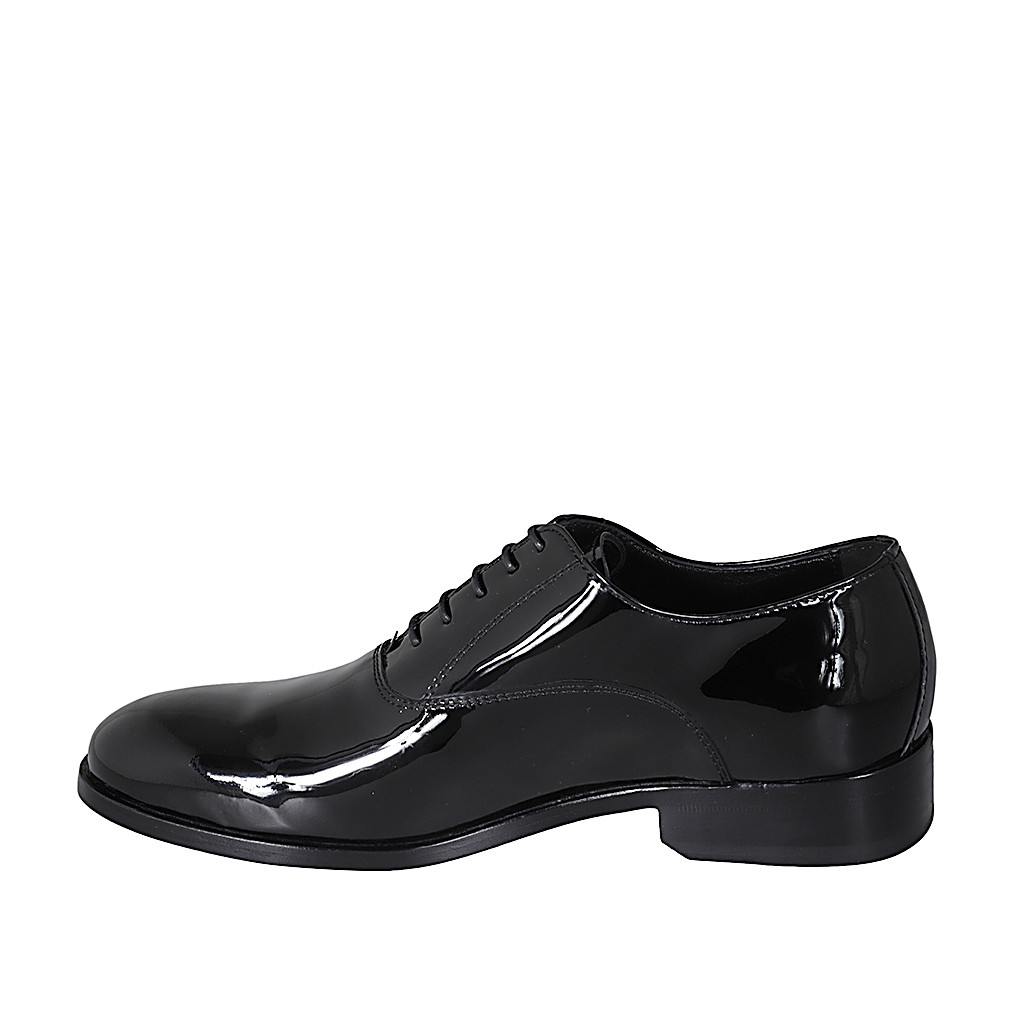 Chaussure richelieu élégante avec lacets pour hommes en cuir verni noir