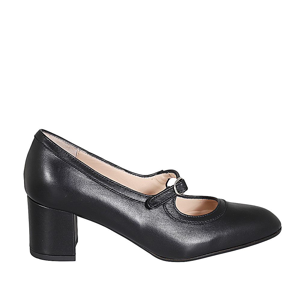 Escarpin pour femmes en cuir noir avec courroie talon 6