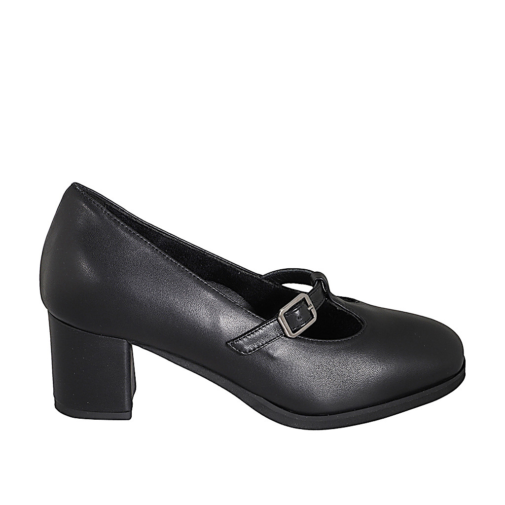 Mary Jane pour femme avec courroie T et semelle intérieure amovible en cuir noir talon 5 - Pointures disponibles:  32, 33, 43, 45, 46