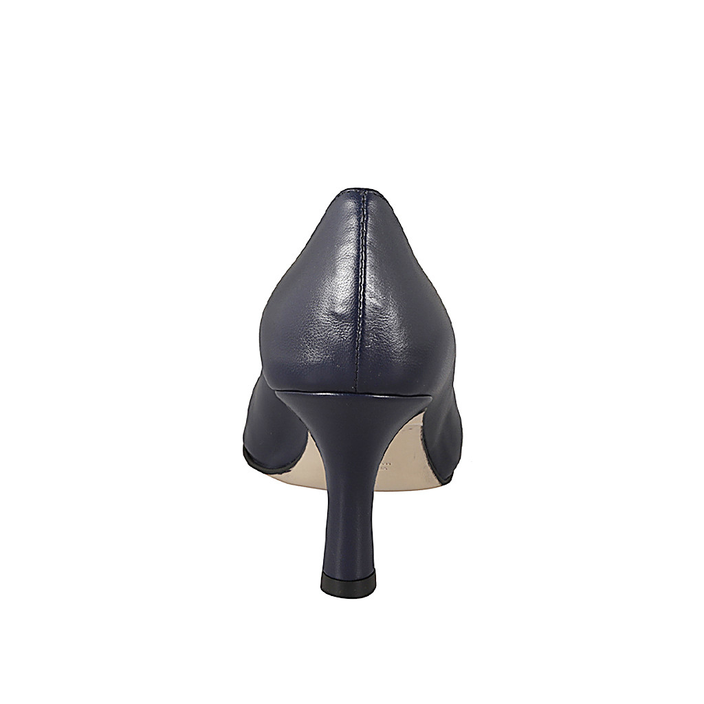 Escarpin à bout pointu pour femmes avec semelle intérieure en mousse à mémoire de forme en cuir bleu foncé avec talon 7