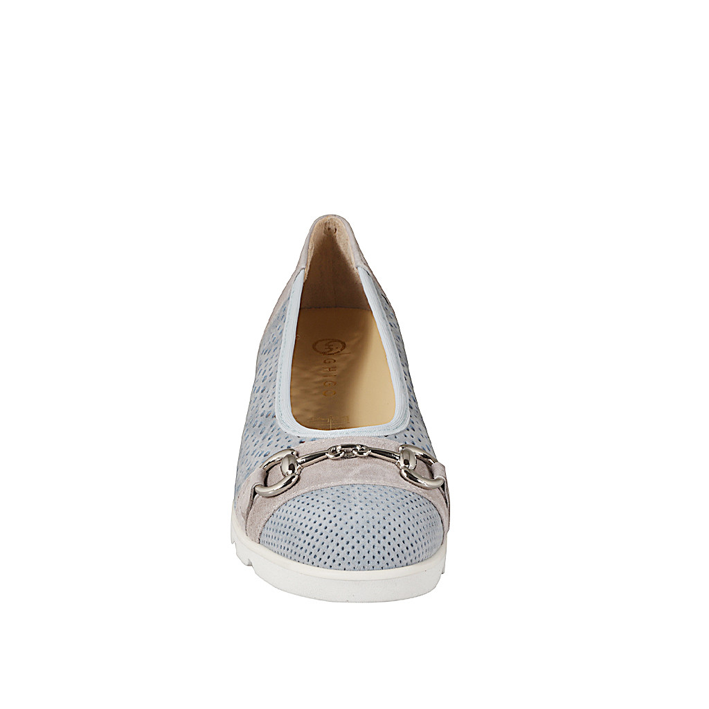 Escarpin pour femmes avec semelle amovible et accessoire en daim perforé bleu clair et daim gris avec talon compensé 3