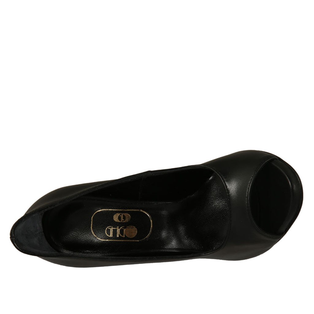 Escarpin à bout ouvert pour femmes avec plateau en cuir noir talon 11 - Pointures disponibles:  31