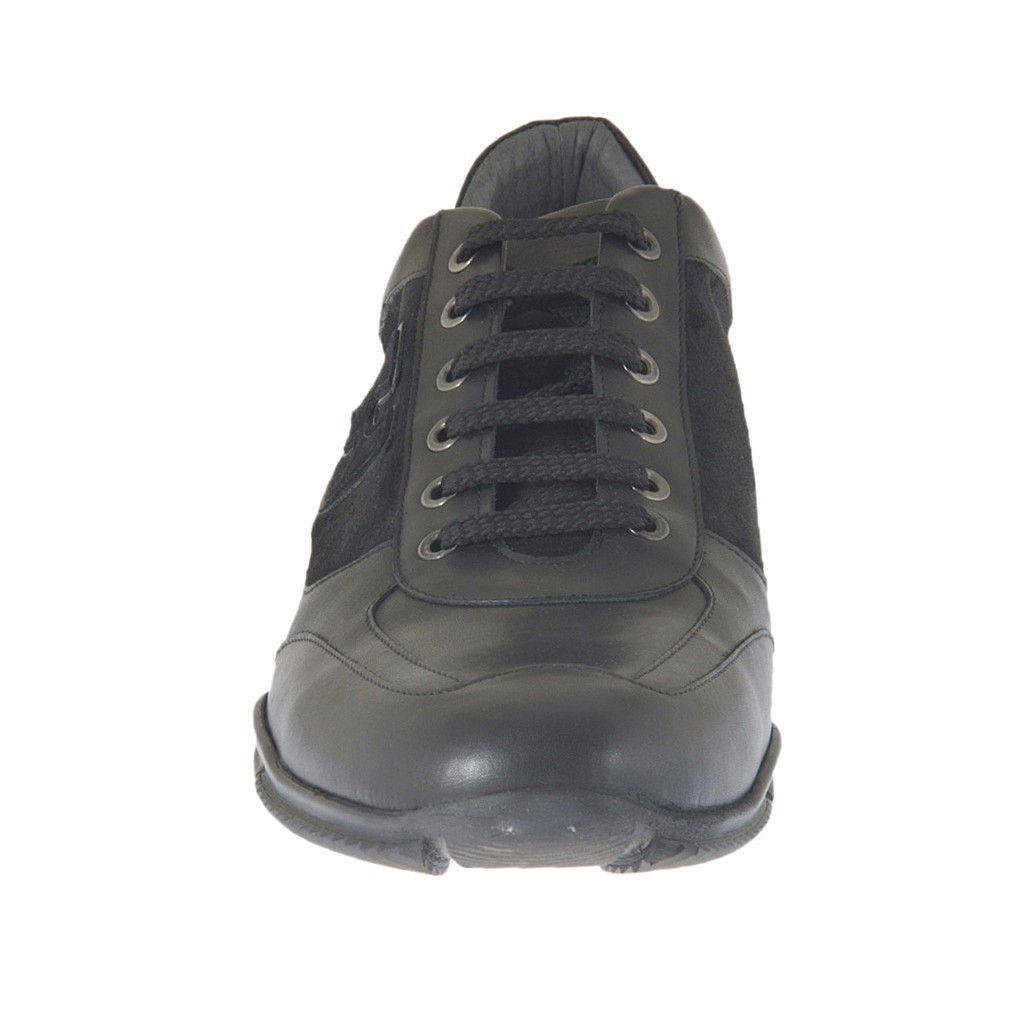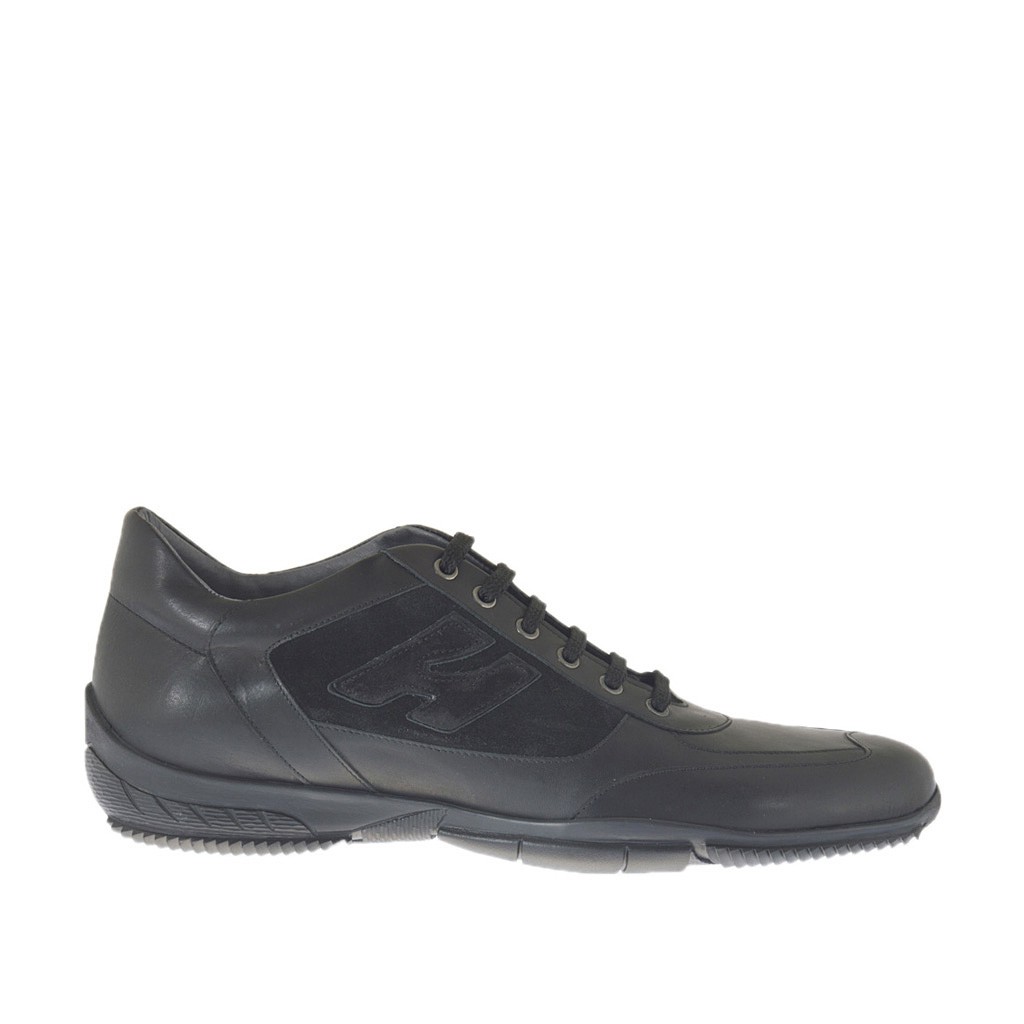 Chaussure sportif à lacets pour hommes en daim et cuir noir - Pointures disponibles:  47
