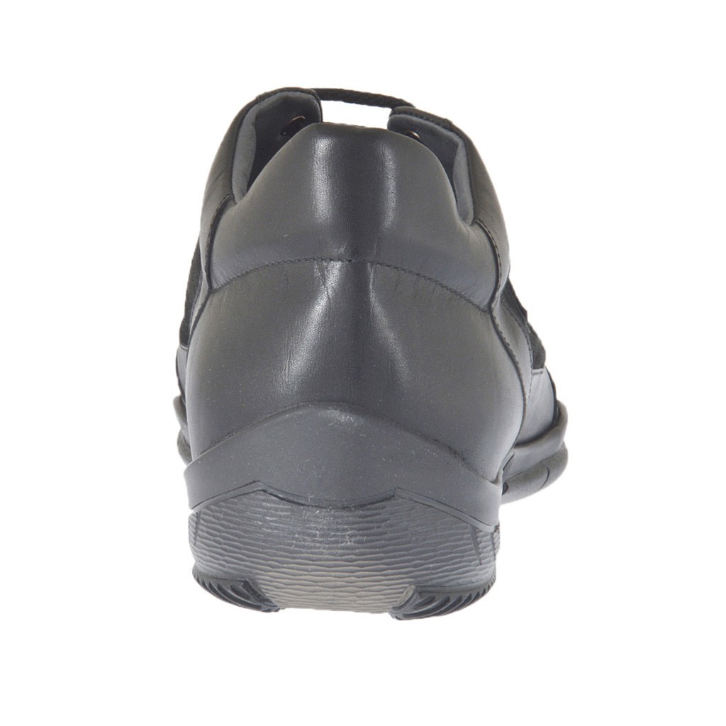 Chaussure sportif à lacets pour hommes, en daim et cuir noir, semelle en caoutchouc, doublure en cuir. Disponible dans les grandes pointures.