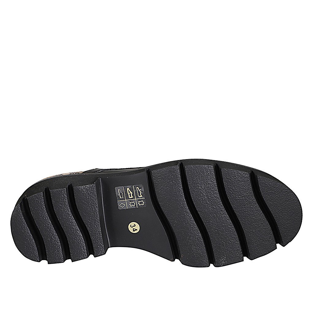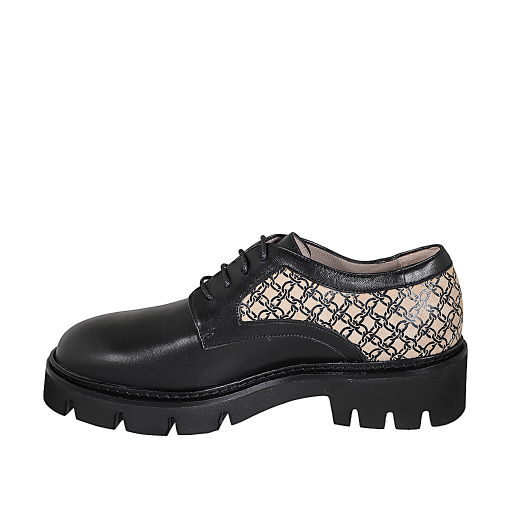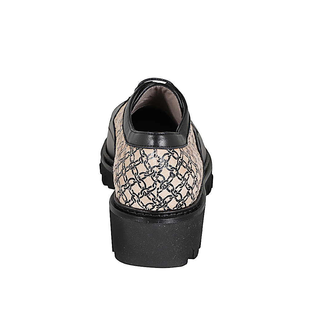 Chaussure derby à lacets pour femmes en cuir noir et daim imprimé beige talon 4 - Pointures disponibles:  32, 33, 35, 42, 43, 44, 45, 46