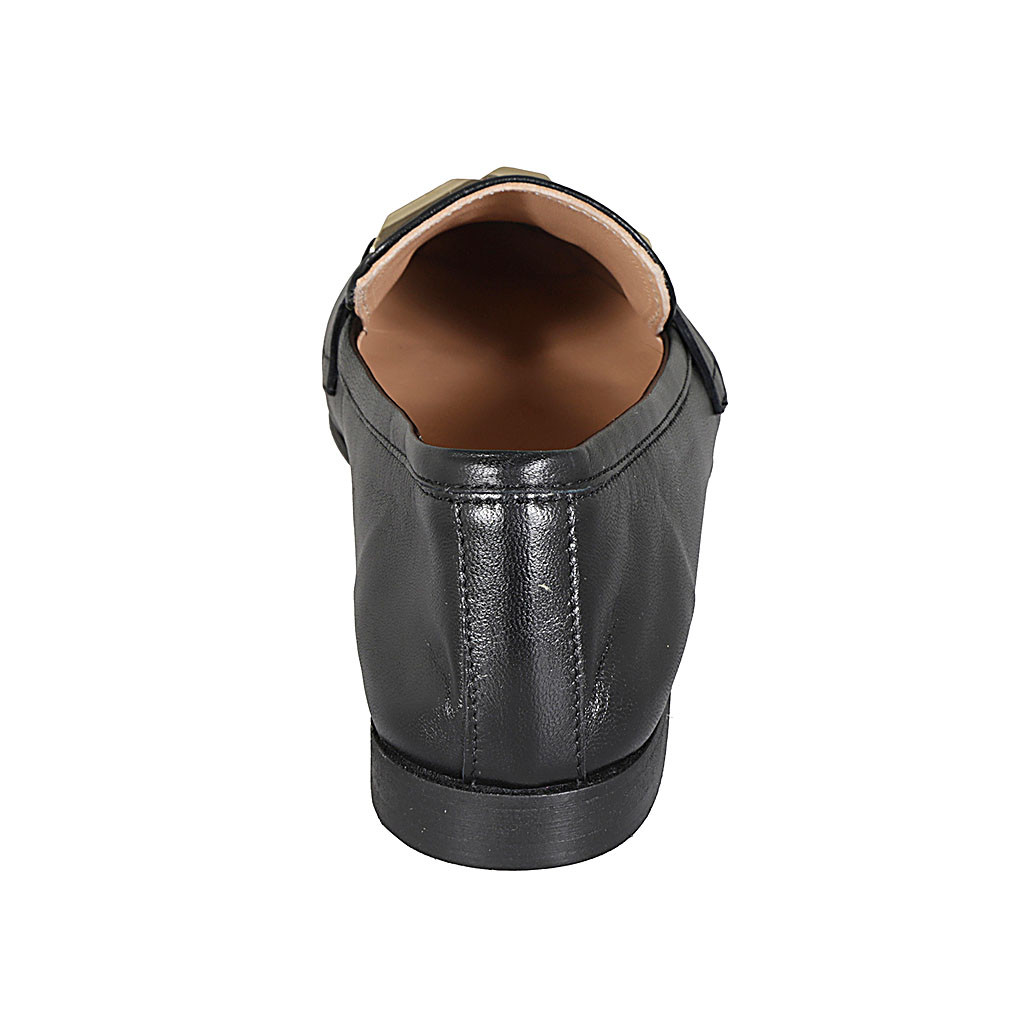 Mocasin à bout pointu pour femmes avec accessoire en cuir noir talon 2