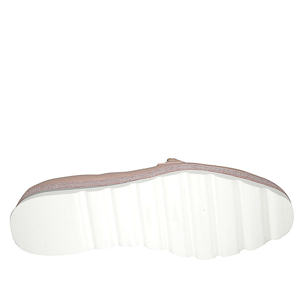 Mocassin pour femmes en cuir rose avec chaîne talon compensé 2 - Pointures disponibles:  44