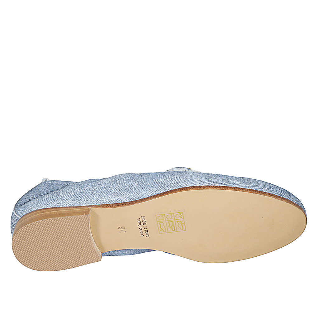 Mocassin pour femmes avec accessoire en bambou et elastique en daim type denim bleu clair talon 2 - Pointures disponibles:  33, 42, 44, 45