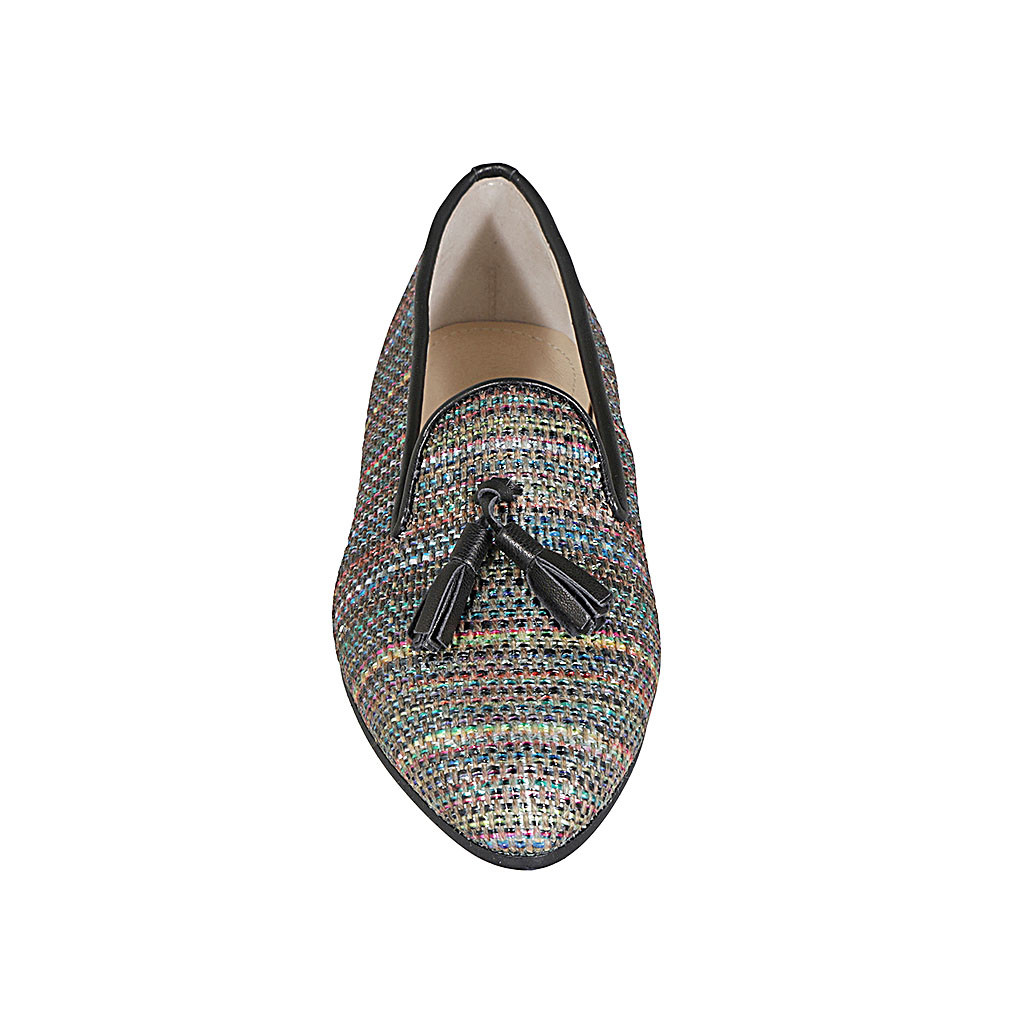 Mocassin pour femmes avec accessoire en daim bleu et tissu tressé bleu clair talon 2