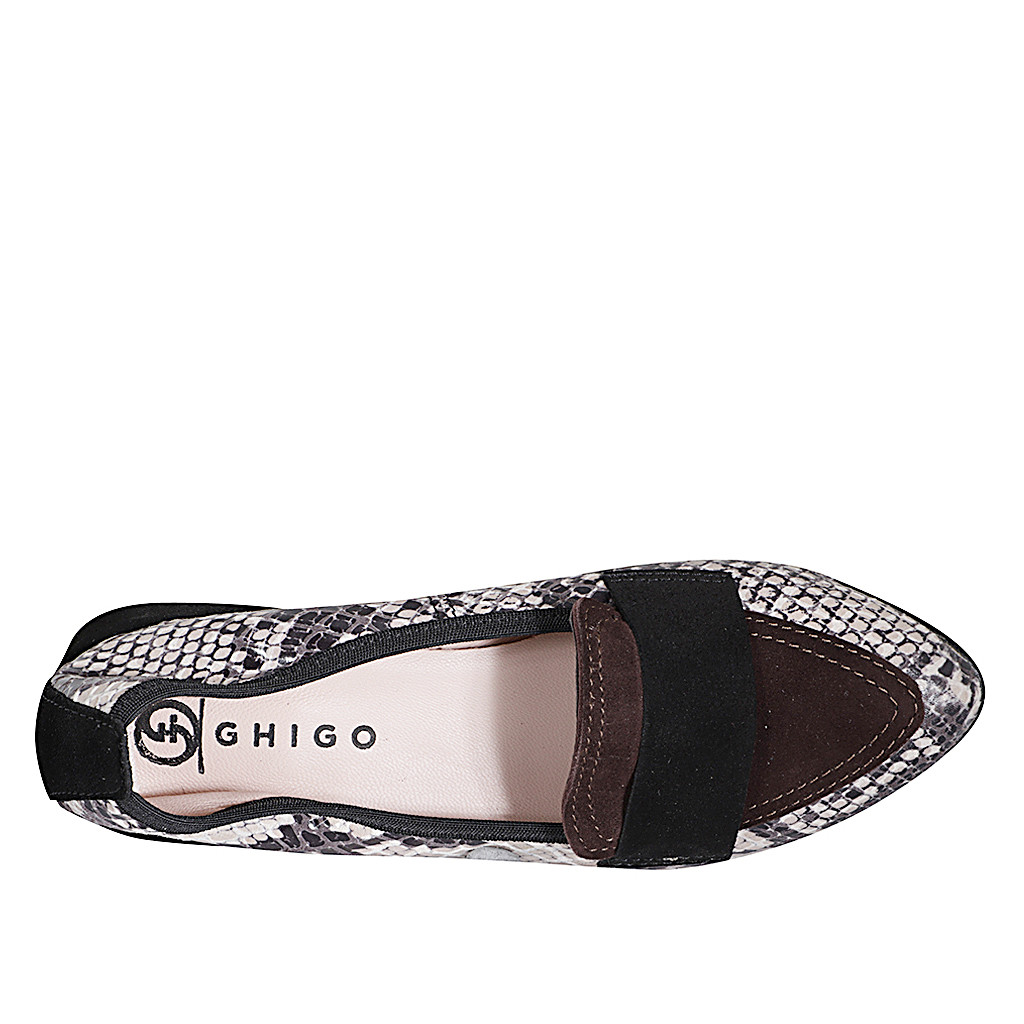 Mocassin à bout pointu pour femmes en cuir verni imprimé et daim noir et marron foncéet talon 2 - Pointures disponibles:  33, 35, 42, 44, 45, 46