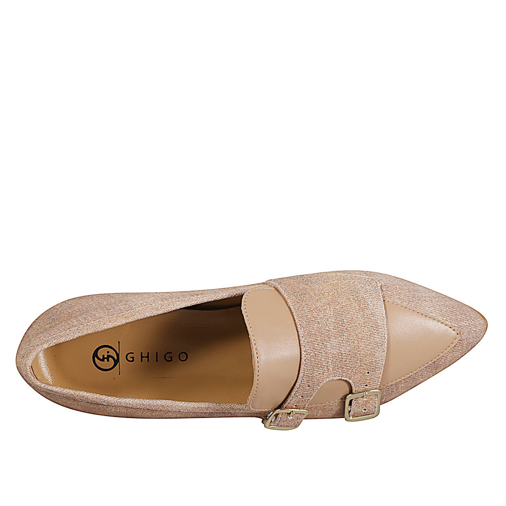 Femme Mary Jane chaussure avec bout pointu et deux courroies en cuir noir, talon 2