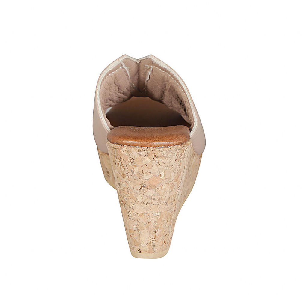 Mule pour femmes en cuir rose clair avec plateforme et talon compensé 9 - Pointures disponibles:  42, 43