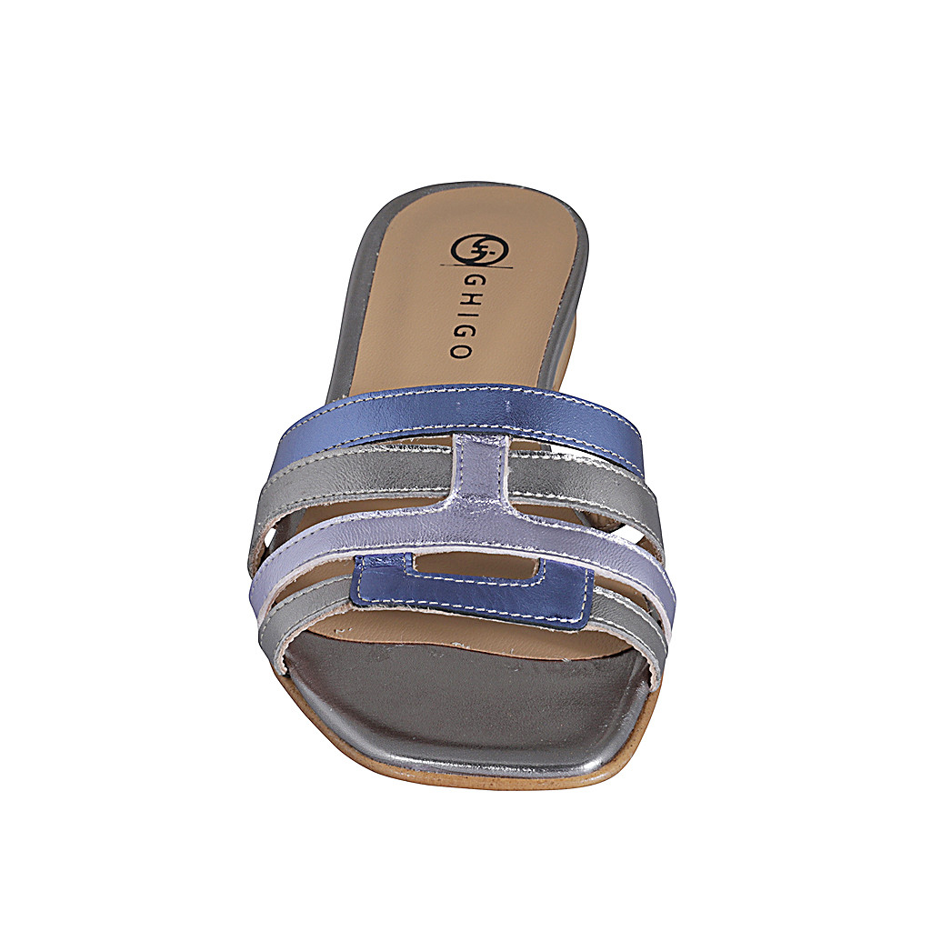 Chaussure ouverte pour femmes avec courroie en cuir blanc et raphia multicouleur talon 7